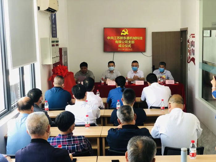 經(jīng)中共江蘇省張家港高新技術產(chǎn)業(yè)開發(fā)區(qū)工作委員會同意,新建中共江蘇新東鑫機械科技有限公司支部委員會,隸屬韓山村黨委管理,由錢衛(wèi)東同志任黨支部書記。5月16日下午,在新東鑫公司舉行了黨支部成立揭牌儀式,高新區(qū)黨群工作部部長張左平同志參加了此次活動。
